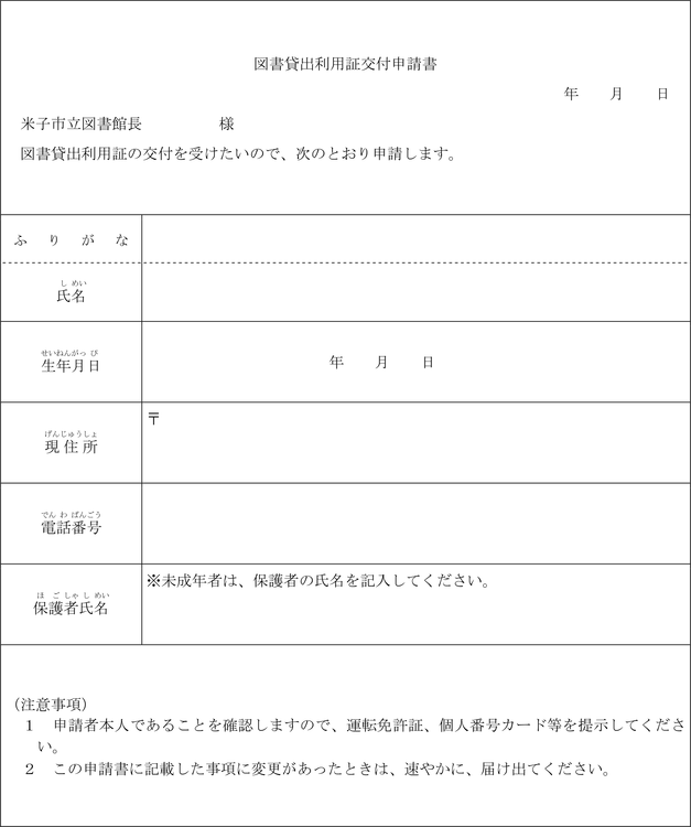 3 個人貸出しを受けようとする者は、あらかじめ、図書貸出利用証交付申請書(
