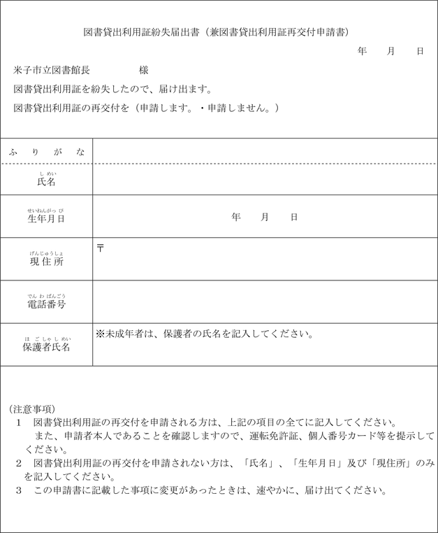 2 前項の規定による利用証の紛失の届出は、図書貸出利用証紛失届出書(